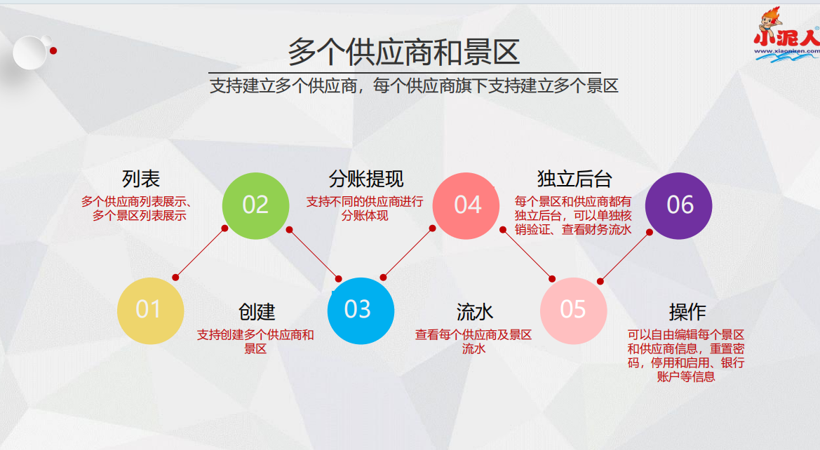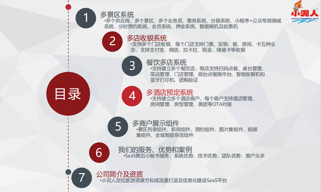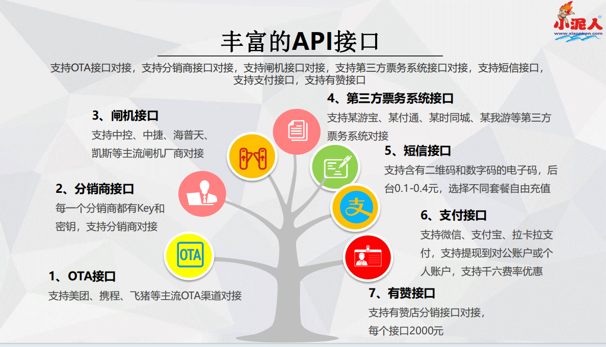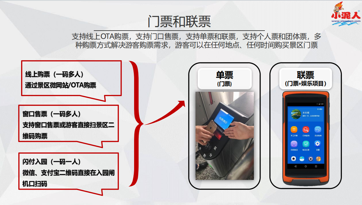 旅游景区综合智能票务管理系统要实现多方面的服务和软件及硬件的结合使用,不仅需要票务系统功能,同时需要整合多种门票种类、分销、二销、餐饮、游船押金、以及商品收银等功能,这就需要一个整合型的综合景区票务管理系统,小泥人在旅游行业管理软件经过十四余年的积累与更新迭代,打造了智慧文旅行业saas应用平台,适应于各类型的旅游区、度假区、景区,博物馆等,物有所值后期维护不产生任何费用,景区运营管理团队选择小泥人公司的原因很简单,这家公司基于微信及自媒体生态,依靠强大技术研发优势,创建丰富软件库和营销功能,研发出了专注为传统大中小旅游商家提供微商城/小程序/智慧景区/智慧零售/智慧餐厅/电子票分销等一体化行业千亿国际的解决方案saas服务平台,致力于帮助传统旅游资源方建立全网营销以及私域流量的打造。主营业务:小泥人旅游saas系统、小泥人多商户saas系统、私域流量代运营、智慧导览、门票在线预约、ar/vr全景拍摄等是所有景区管理者运营最好的选择。如果想了解更多请在千亿国际官网注册体验您想了解的业态。
