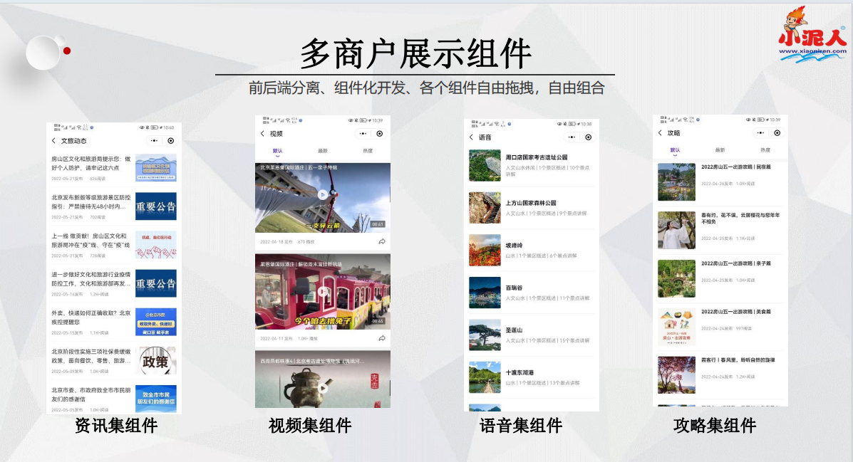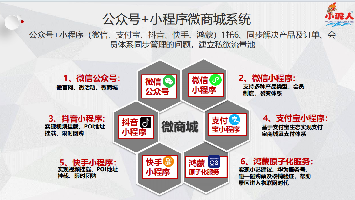 小泥人千亿国际的简介: 公司2010年成立,千亿国际的旗下品牌是小泥人,总部位于以创新而著称的中关村科技园区,公司基于微信及自媒体生态,依靠强大研发优势,创建丰富软件库和营销功能,研发出了专注为传统中小旅游商家提供微商城/小程序/智慧景区/智慧零售/智慧餐厅/电子票、分销等一体化行业千亿国际的解决方案saas服务平台,致力于帮助传统旅游,资源方建立全网营销以及私域流量的打造。主营业务:小泥人旅游saas系统、小泥人多商户saas系统、私域流量代运营、vr全景拍摄等; 小泥人是一家蓬勃发展的创新性企业,定位旅游资源方私域流量打造及信息化saas平台,一直以技术为驱动,市场先行,经过10年发展,现已在北股交上市。